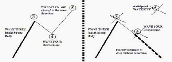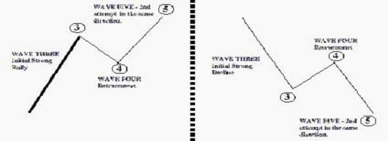 При применении анализа Волны Эллиота любой основной подъём или понижение может быть классифицирован как Третья Волна. Когда имеет место Третья Волна, исходя из теории Волны Эллиота, ожидается Откат Четвёртой Волны, за которым следует вторая попытка в том же направлении. Данная последняя фаза называется Пятая Волна. Фаза Подъёма Фаза Понижения Третья Волна – Исходный Третья Волна - Исходное Уверенный Подъём Уверенное Понижение Четвёртая Волна – Откат Четвёртая Волна - Откат Пятая Волна – вторая попытка Пятая Волна – вторая в том же направлении попытка в том же направлении