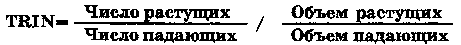 Еще о NH-NLРаньше аналитики использовали сглаженный NH-NL (Smoothed NH-NL), полученный при помощи 10 или 30-дневного МА. Когда 10-дневное МА от NH-NL поднимается выше 30-дневного МА, то подается сигнал к покупке. Когда 10-дневное МА падает ниже 30-дневного МА, то это сигнал к продаже. Просто NH-NL дает более ясные сигналы, но если вы все же хотите сгладить NH-NL, то лучше использовать ЕМА. Число нового максимума и нового минимума ежедневно сообщается Нью-Йоркской фондовой биржей. Американской фондовой биржей. Биржей Овер Каунтер и Лондонской фондовой биржей. Большинство зарубежных фондовых бирж не дают таких данных, но оснащенный компьютером аналитик легко построит NH-NL для любого рынка. Игроки, использующие NH-NL вне США, получают преимущество перед теми конкурентами, у которых нет таких данных. Вам нужно получить файл дневных данных для каждой акции на бирже и обновлять его ежедневно. Запрограммируйте ваш компьютер на просмотр всей базы данных и поиск тех акций, которые достигли абсолютного максимума или минимума за последние 52 недели. NH-NL не работает там, где доминирует незначительное число акций. Например, на Миланской фондовой бирже в Италии зарегистрированы сотни акций, но только две из них, FIAT и General Motors, отвечают за 70 процентов оборота. Эти гиганты подавляют весь остальной рынок. 6.2. Индикатор игрока и другие индикаторы рынка ценных бумагИндикатор игрока (Trader Index) - TRIN является ведущим индикатором рынка ценных бумаг. Он показывает, когда основные подъемы и спады созрели для обращения вспять, измеряя степень оптимизма доминирующей на рынке группы. Излишний оптимизм связан с вершинами рынка, а излишний пессимизм с его дном. TRIN измеряет отношение числа растущих акций к падающим и соотносит его с отношением растущего объема к падающему. Этот индикатор распространялся Ричардом Армсом и включен в большинство справочных систем. Любой брокер, у которого на столе установлен терминал, может получить последний TRIN нажатием нескольких клавиш. В конце каждого дня торгов легко вычислить TRIN от руки или на компьютере. С течением времени возникали различные модификации TRIN: индекс листинговых акций, индекс арбитража, индекс возвратности дивидендов и так далее. Первоначальная интерпретация TRIN изменилась, но сам TRIN по прежнему остается одним из лучших рыночных индикаторов. Он помогает выбрать момент для игры как с акциями, так и с фьючерсами и опционами по индексам рынка ценных бумаг. Как построить TRINДля того, чтобы построить индекс игрока, нужно четыре вида данных: число растущих и падающих акций и объем обеих групп. После каждого дня торгов эти данные объявляются Нью-йоркской фондовой биржей и некоторыми другими биржами.